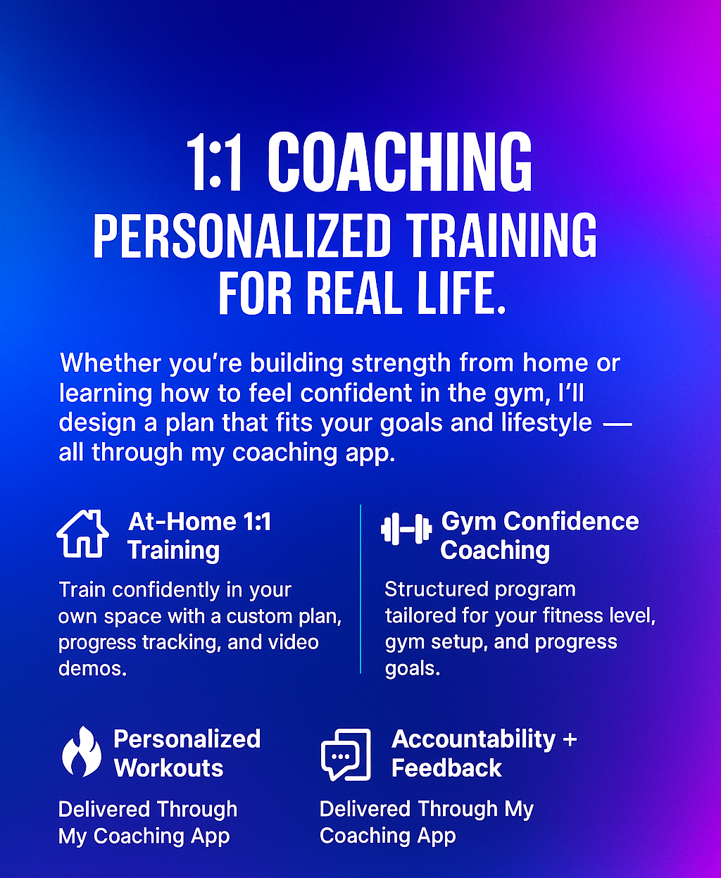 Confidence. Strength. Movement Let’s start where you are — no pressure, just progress.